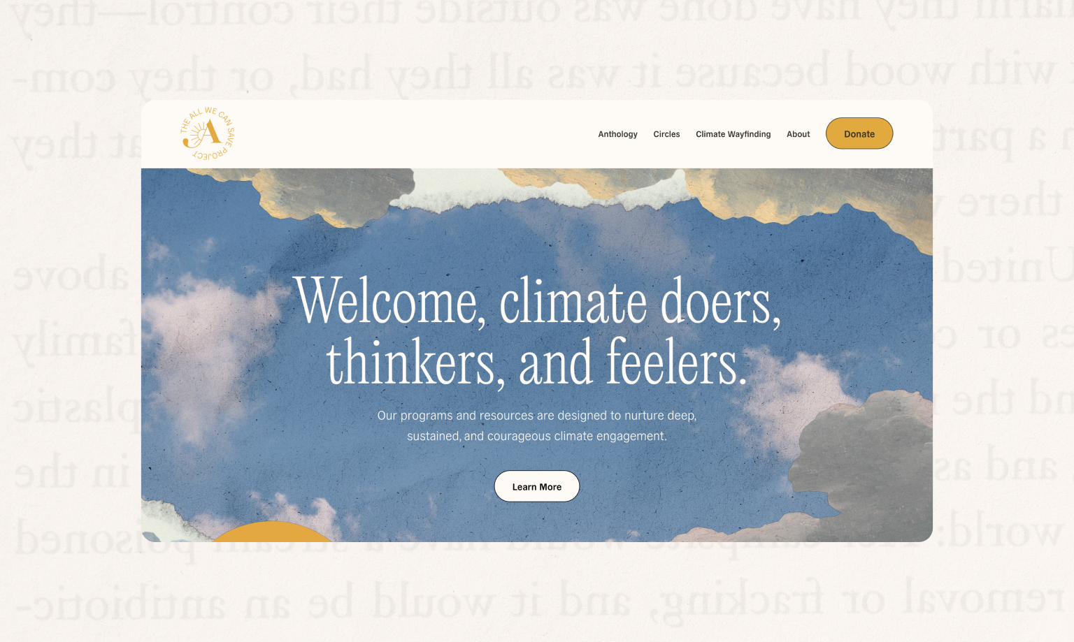 All We Can Save is a climate… Ampersand took their initial brand and evolved it—taking an academic feel and integrating it with nature based collage elements.