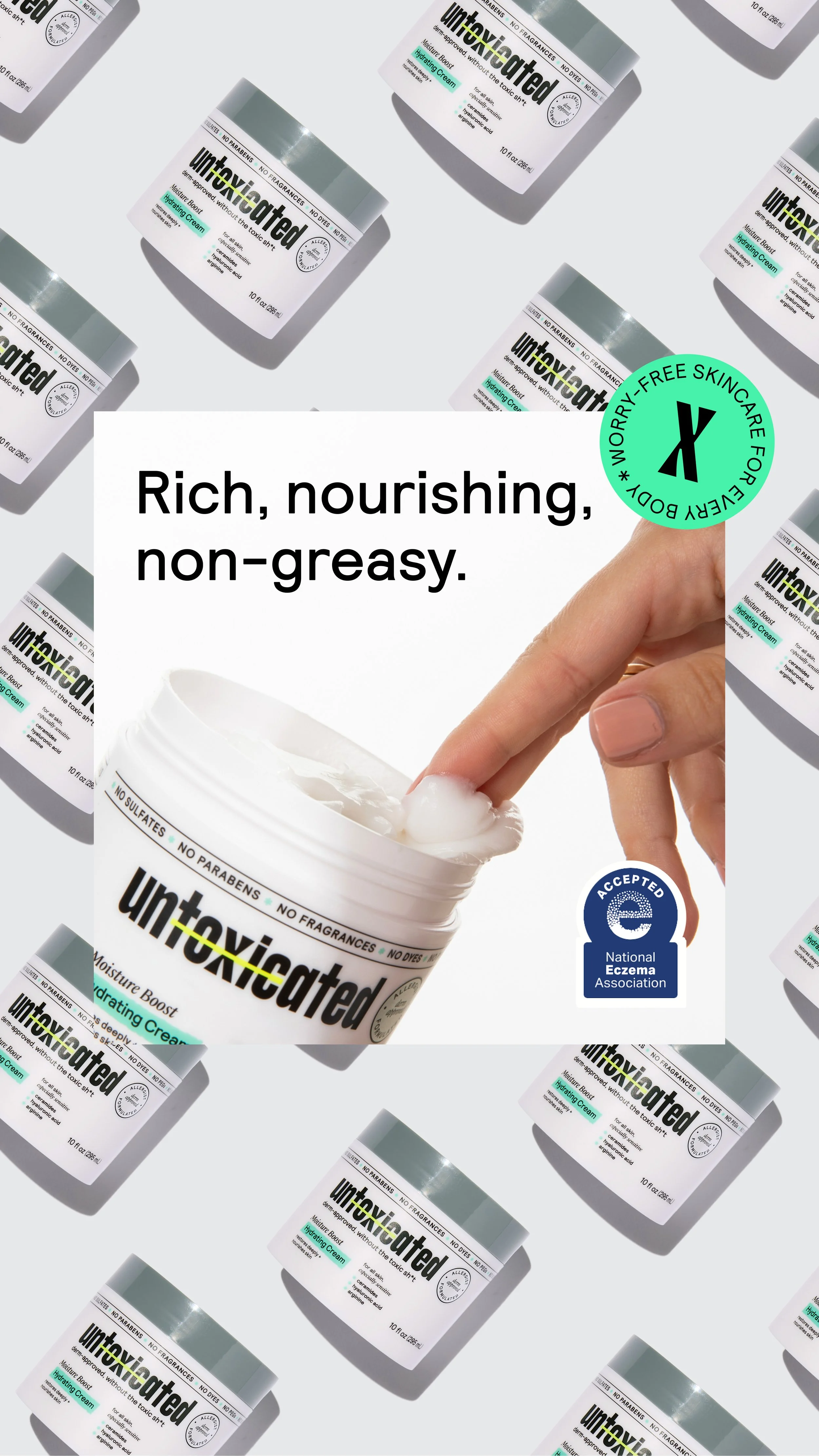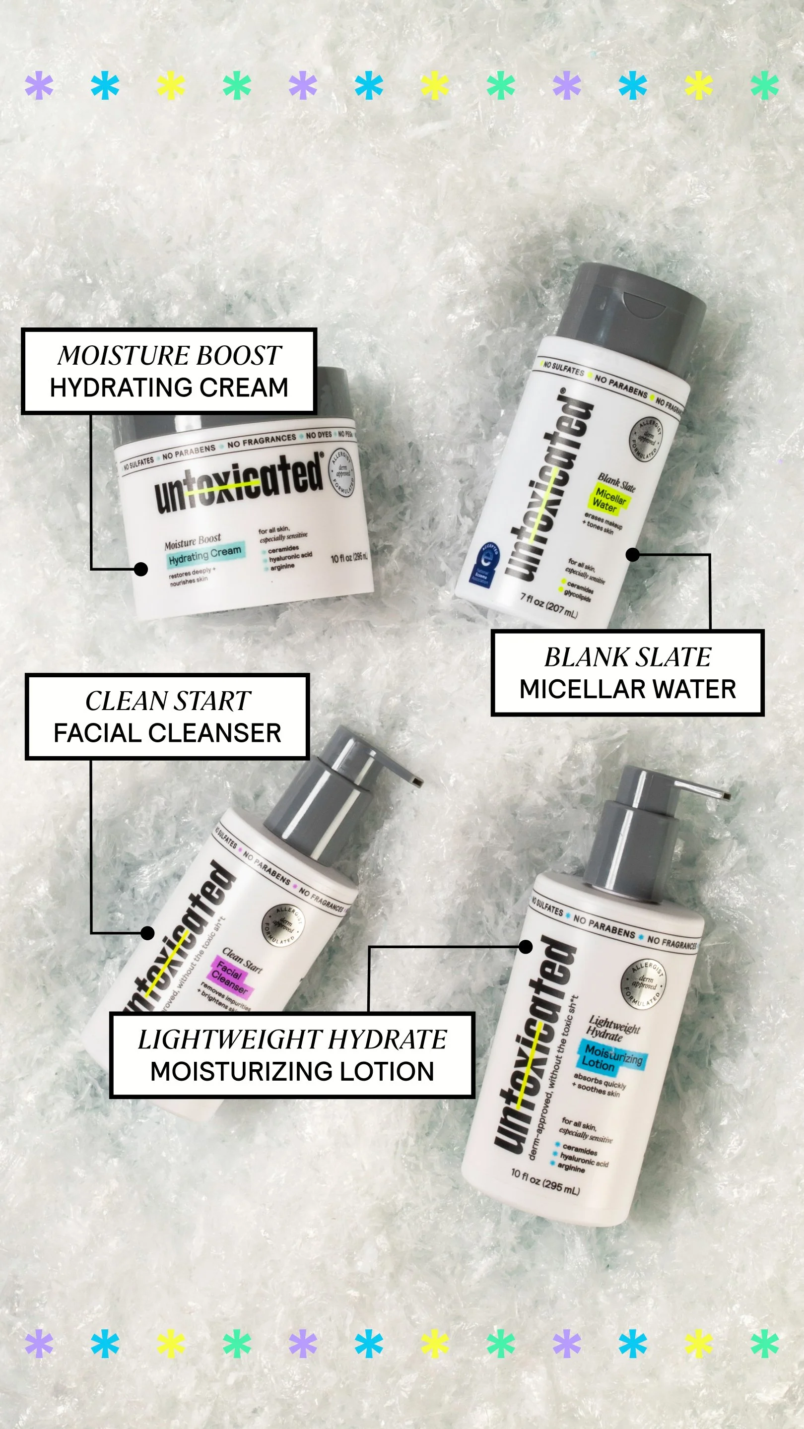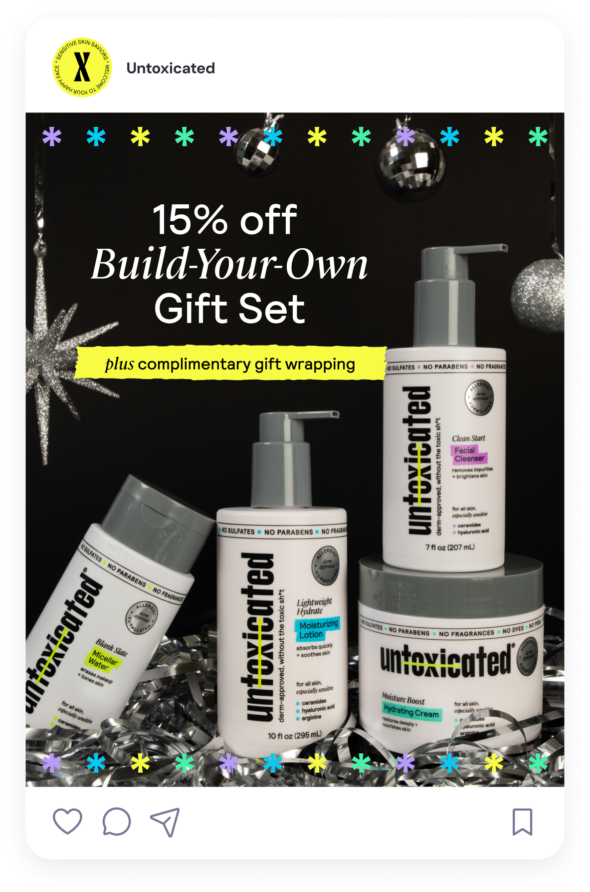 While working with Untoxicated, a sensitive skincare brand, I established and maintained a digital design look across social, email, and paid ad marketing, developed digital templates, built brand and social libraries in Figma for agency use, created product launch campaign graphics, and produced shipping materials.